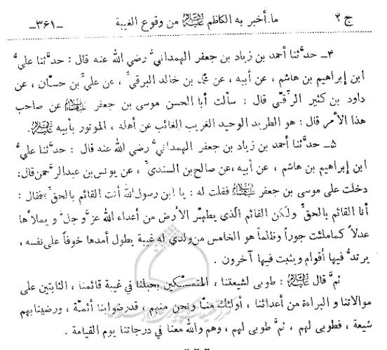 کمال الدین ج ۲ باب ۳۴ ح ۵ - تصویر متن کتاب در ذیل آورده شده است: